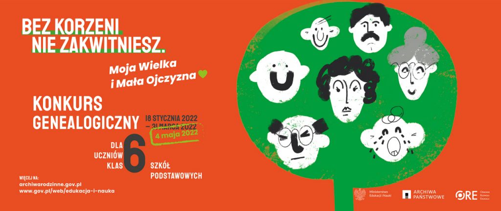 Dlatego też Ministerstwo Edukacji i Nauki oraz Archiwa Państwowe podjęły się organizacji konkursu genealogicznego pt. „Bez korzeni nie zakwitniesz. Moja Wielka i Mała Ojczyzna”. Konkurs jest skierowany do uczniów klas VI szkół podstawowych i odbywa się na dwóch szczeblach: wojewódzkim i centralnym. Zadaniem konkursowym jest stworzenia drzewa genealogicznego swojej rodziny, opracowanego na podstawie m.in. rozmów (wywiadów) z rodziną i kwerendy w archiwum rodzinnym oraz w archiwum państwowym. Uczeń przygotowuje projekt, pod opieką nauczyciela uczącego