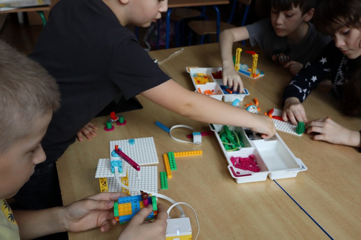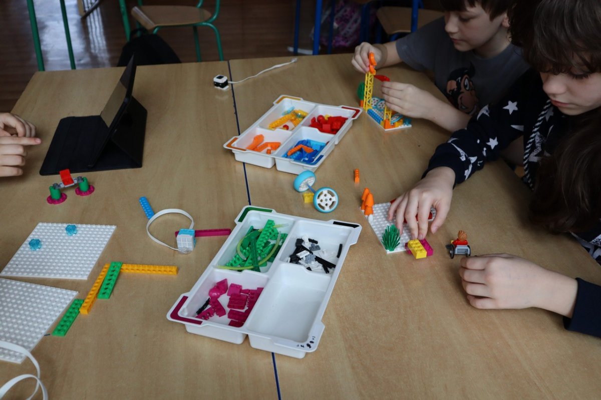 Uczniowie klasy III budowali dziś konstrukcje w ramach projektu „Laboratoria Przyszłości” Do dyspozycji mieli zestaw Lego Essentials. Silniczki, czujniczki, płytki i oczywiście programowanie. Każdy znalazł coś ciekawego dla siebie. Projektowanie obiektowe na tablecie też nikomu nie sprawiło trudności. Automatyka w czystym wydaniu a przy tym nauka i zabawa.
