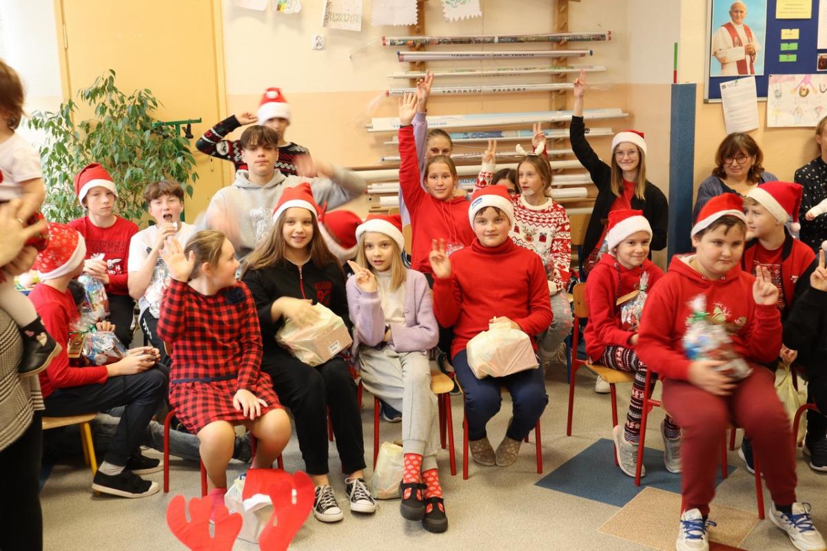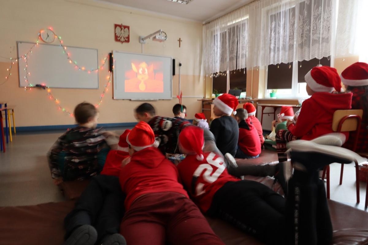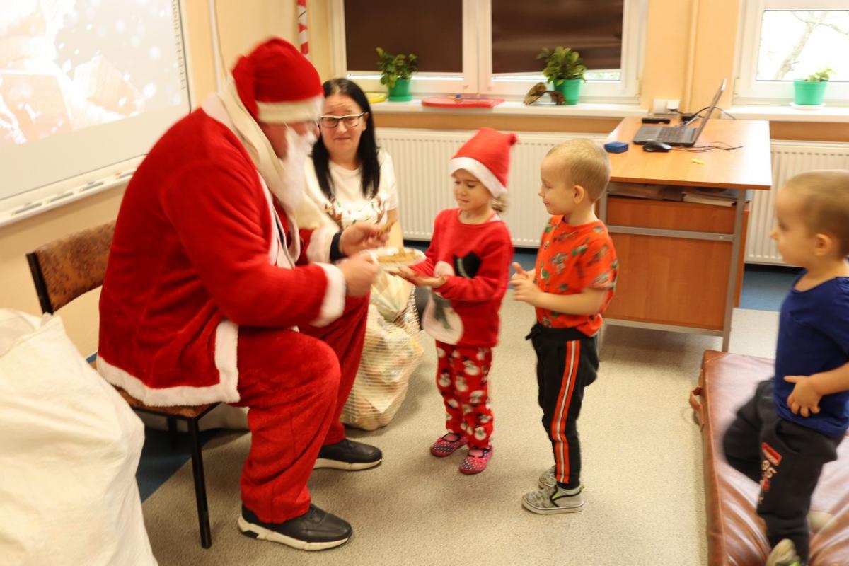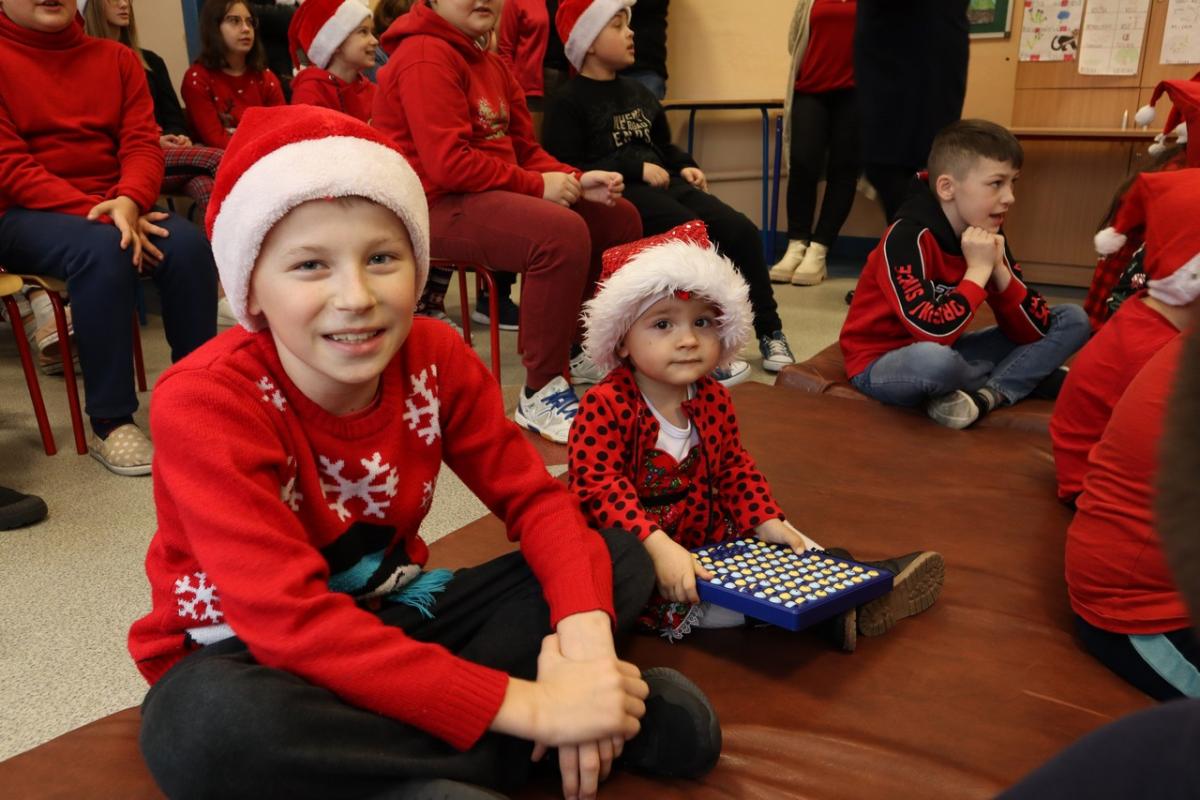 Mikołaj przybył w asyście dwóch elfów, które pomogły mu odczytywać imiona dzieci dzieci, bo u Mikołaja oczy już nie te. Na początku prezenty otrzymały maluszki, potem klasy młodsze i na końcu klasa ósma. A jakże nie obyło się bez wierszyków i piosenek dla Mikołaja. Mikołaj nie zapomniał też o nauczycielach – każdy z nich otrzymał drobny słodki upominek.