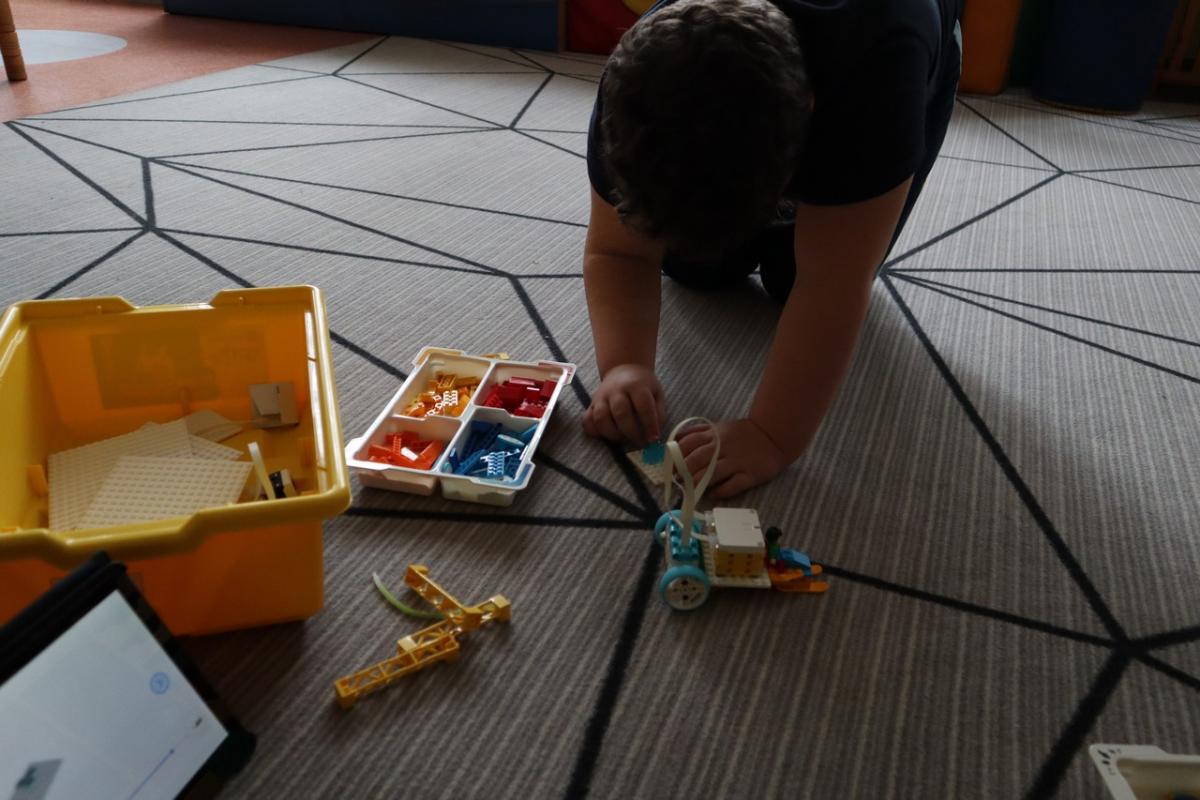 Dnia 13 lutego odbyły się zajęcia rozwijające naukę kodowania i programowania w ramach programu Laboratoria przyszłości w klasie II. Podczas zajęć wykorzystaliśmy klocki LEGO Education SPIKE Esential. Uczeń mógł samodzielnie skonstruować pojazd, po czym stworzył do niego kod za pomocą którego auto mogło samodzielnie się poruszać i omijać stworzone dla niego przeszkody. W trakcie zabawy zbudowaliśmy pojazd i wyposazyliśmy go w silnik i czujnik ruchu. Dzięki temu mogliśmy się nauczyć przy pomocy komputera i odpowiedniej aplikacji programowania zbudowanej przez siebie konstrukcje, dowiedzieć sie jaka jest zaleznosc miedzy pozycja czujnika a działaniem robota.