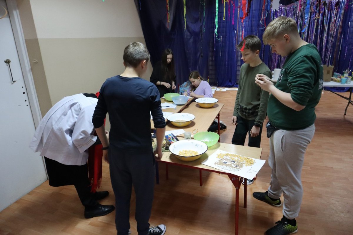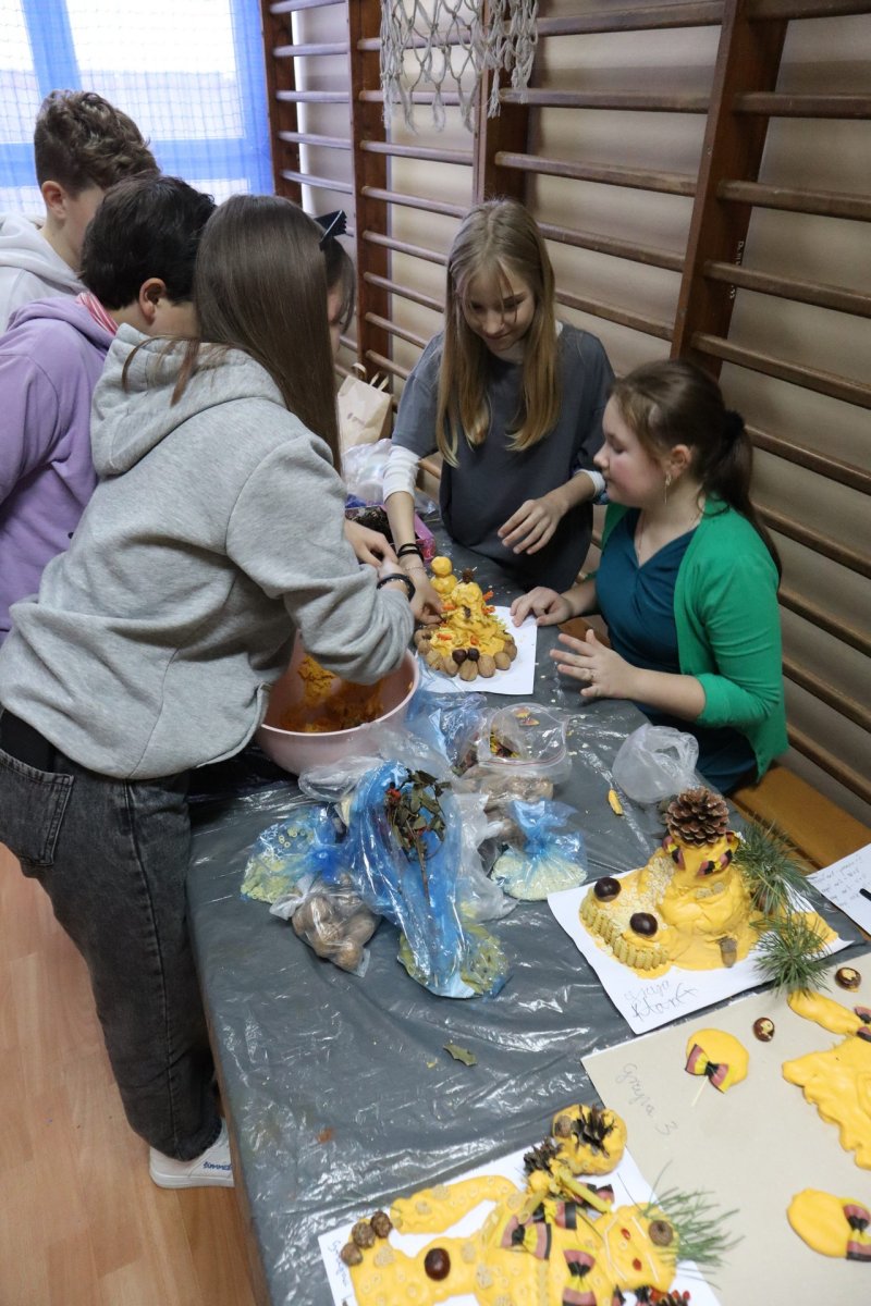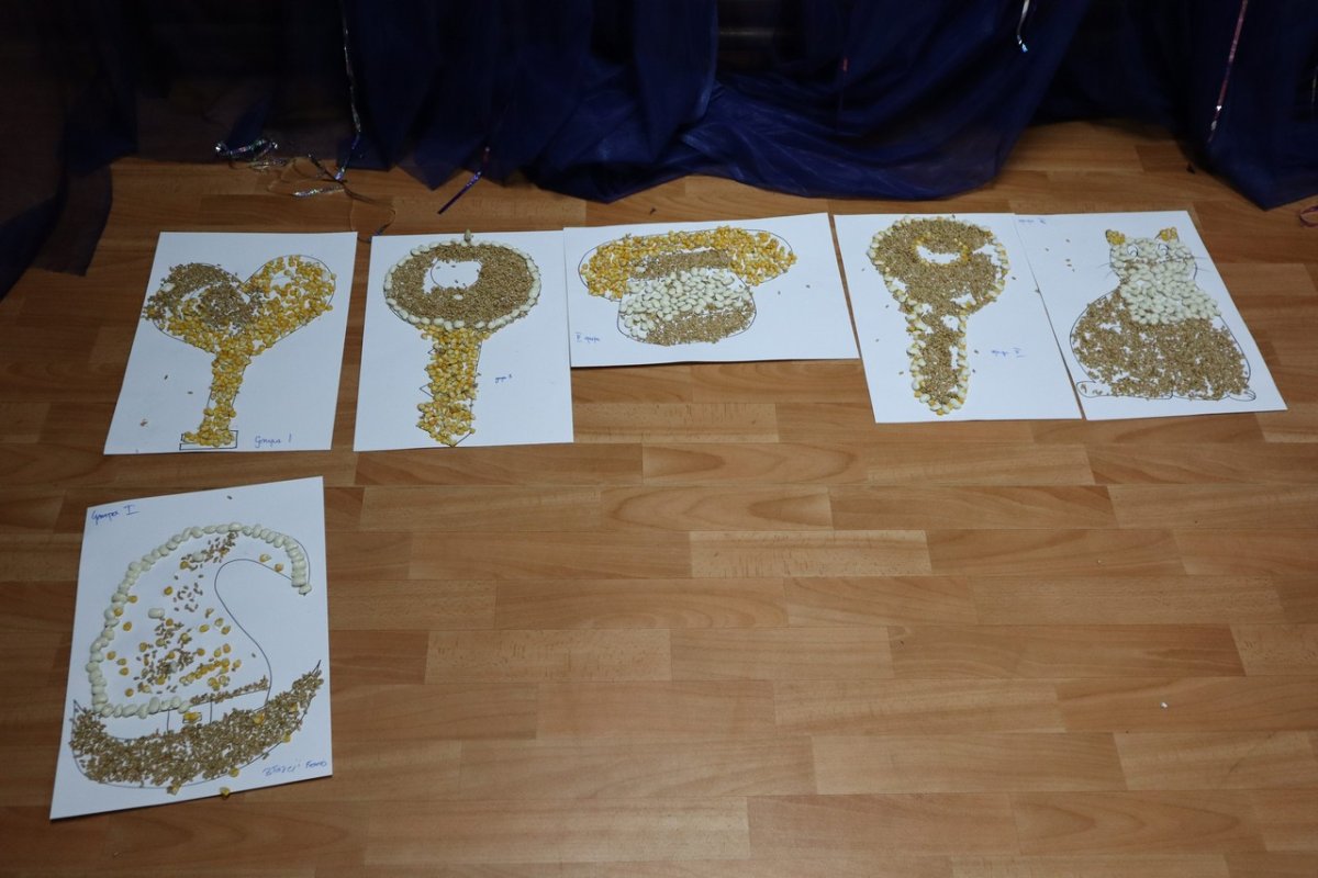 Uczniowie ze zdziwieniem przyglądali się czterem stacjom przygotowanych wcześniej przez panią Basię oraz przez panią Amelię. Po udzieleniu instruktażu i podziale na zespoły, każda z grup wzięła się do pracy. Jury oceniało przede wszystkim pracę zespołową, chęć współpracy, oraz umiejętność porozumiewania się. Na pierwszej stacji uczniowie mieli za zadanie stworzyć rzeźbę z masy plastycznej, oraz materiałów przyrodniczych. Druga stacja wymagała dokładności i precyzji w wysypywaniu szablonów na przykład kota, klucza, kapelusza sypkimi materiałami. Na kolejnym przystanku wszyscy mogli dać upust swojej wyobraźni i ekspresji malarskiej. Natomiast na czwartej stacji tworzyli konstrukcję 3D z fasoli i ciecierzycy.