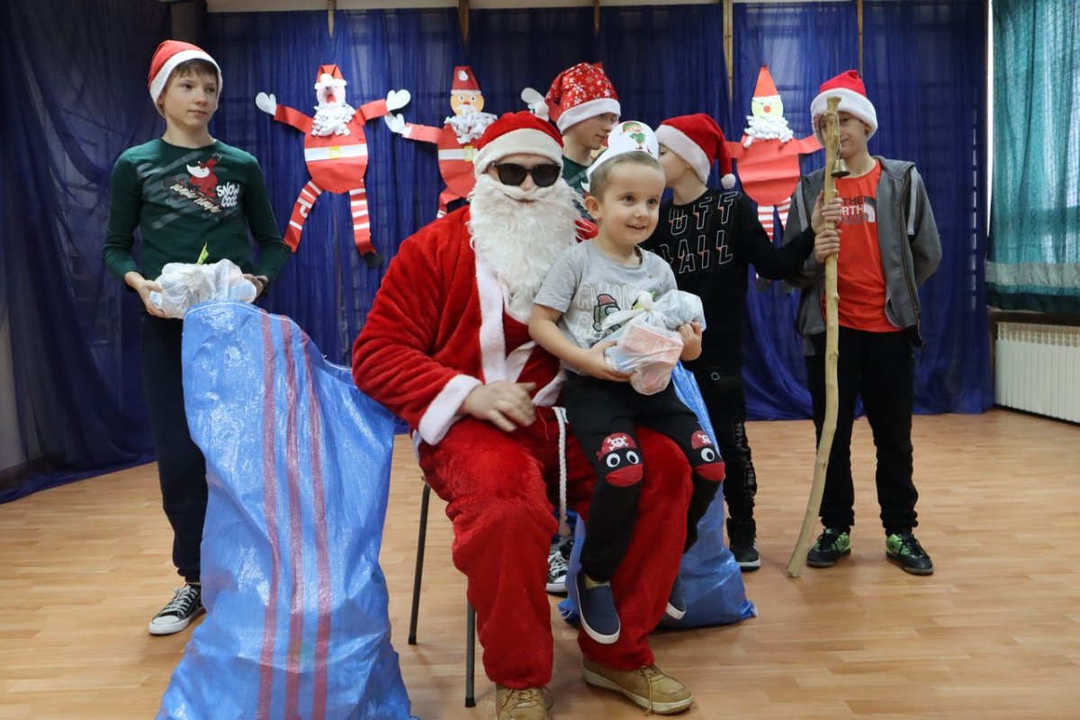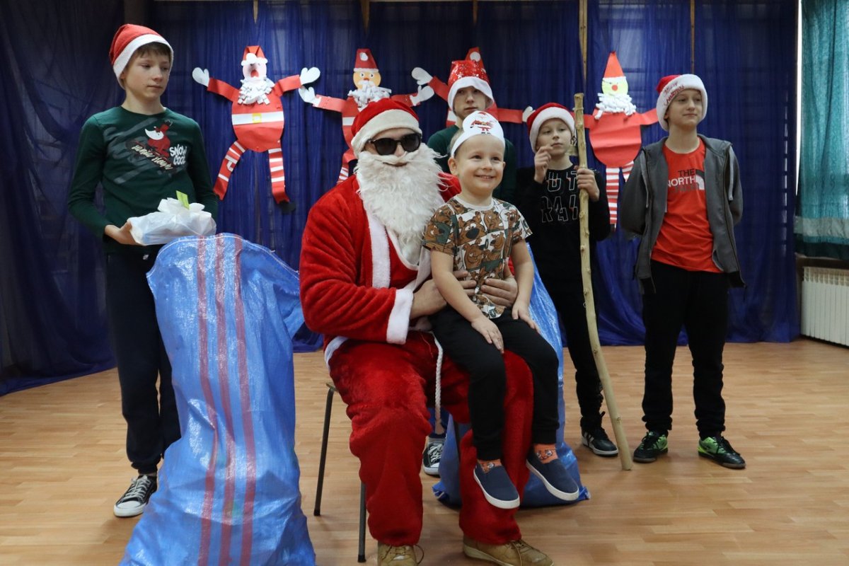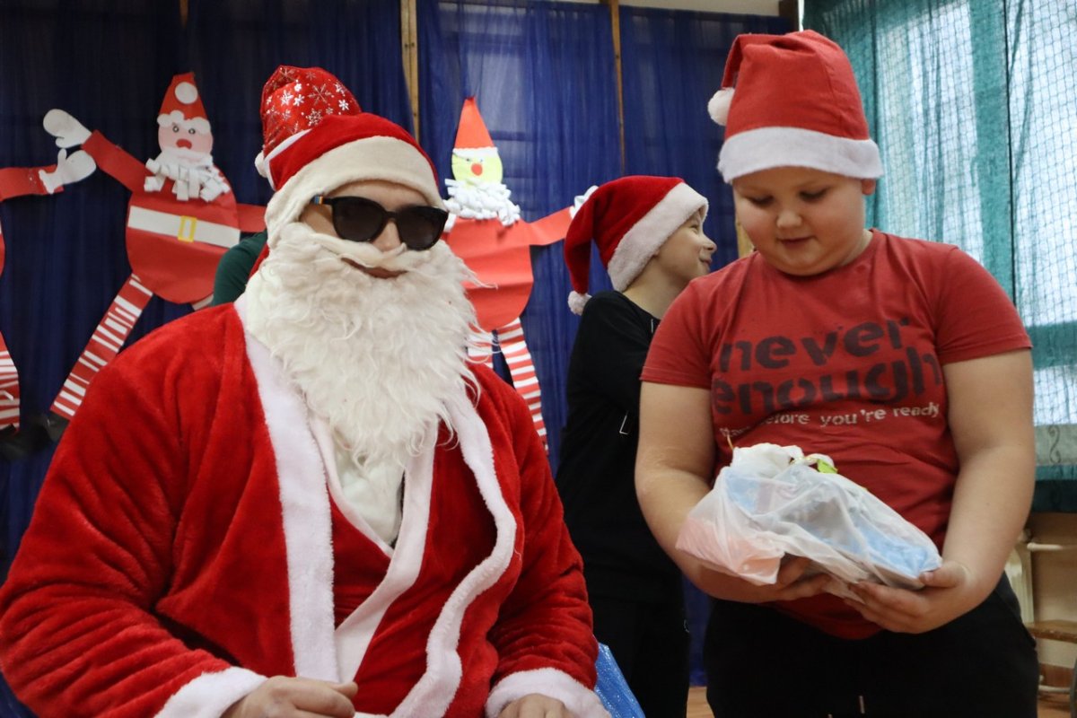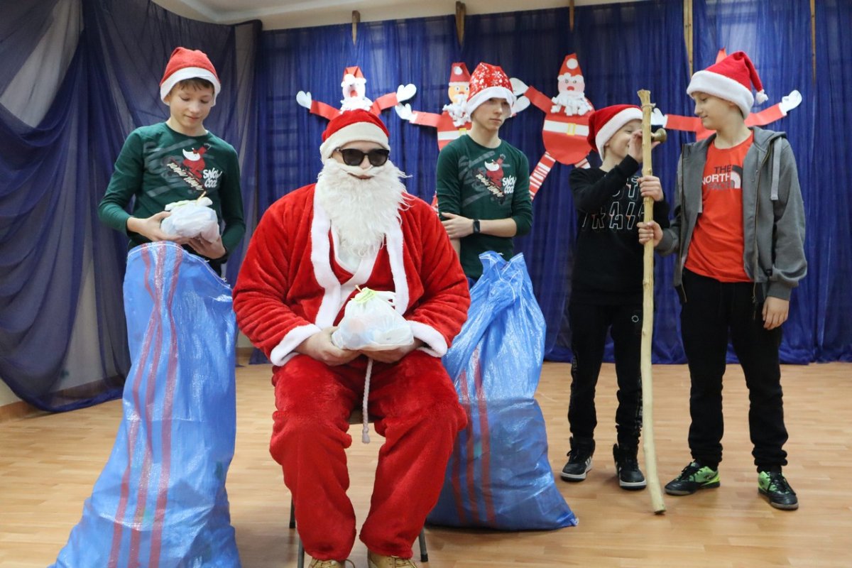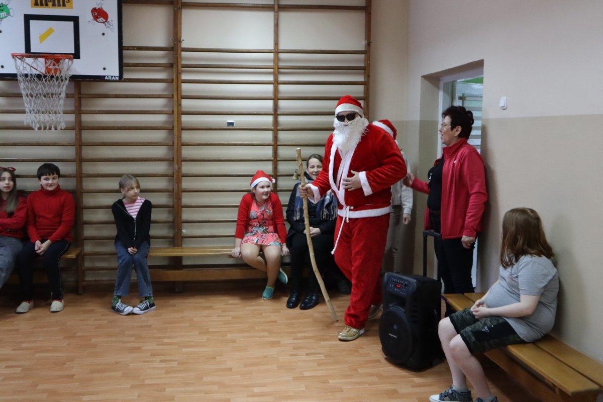 Wszyscy czekali z niecierpliwością na sali gimnastycznej. Majestatycznym krokiem wszedł nasz gość niosąc wór pełen prezentów. Na szczęście miał pomocników elfów bo sam nie dał by rady rozdać tych wszystkich podarków.