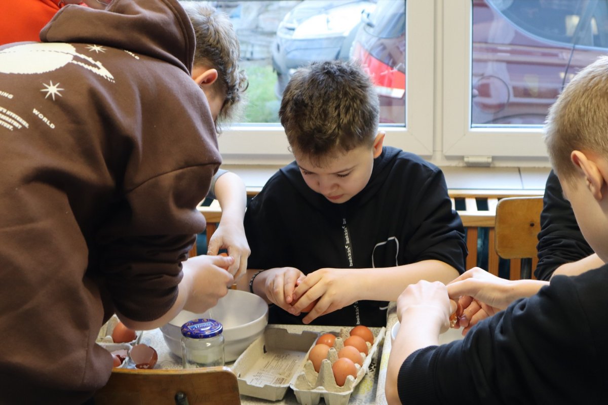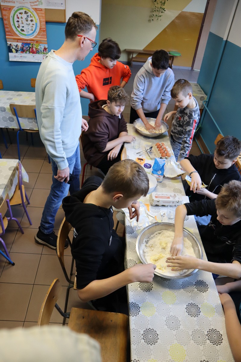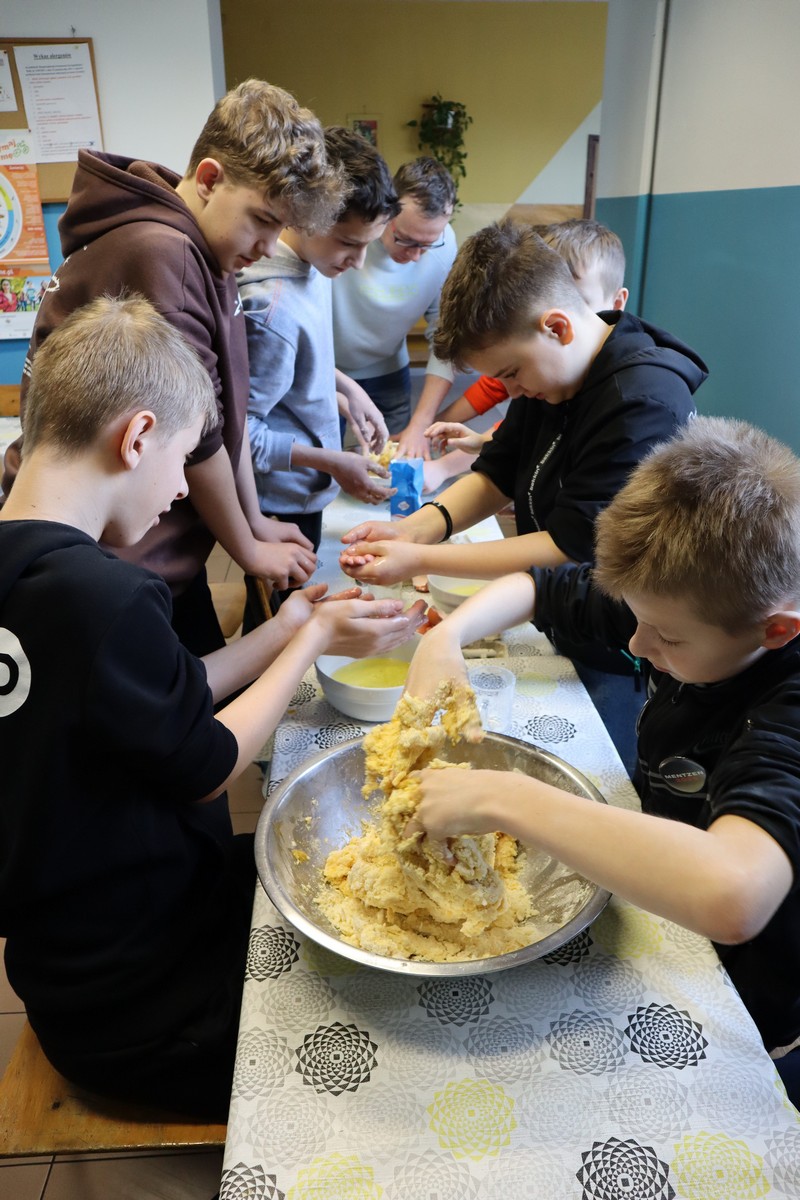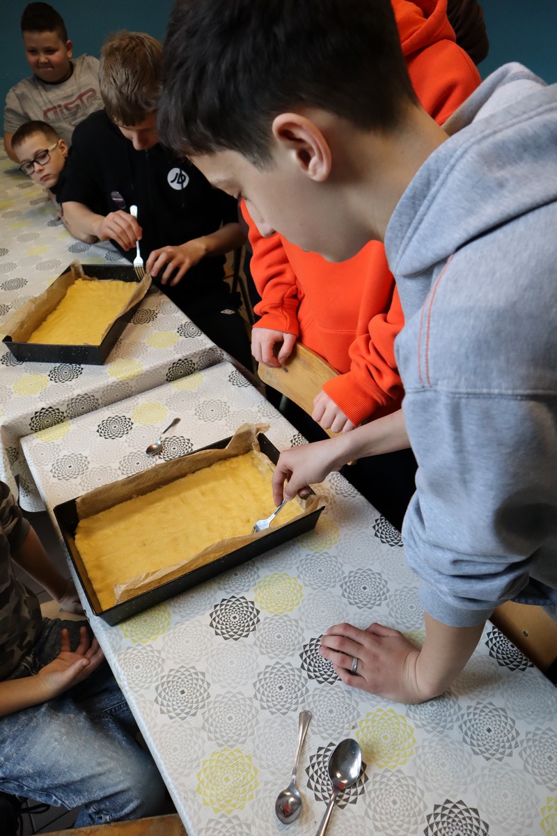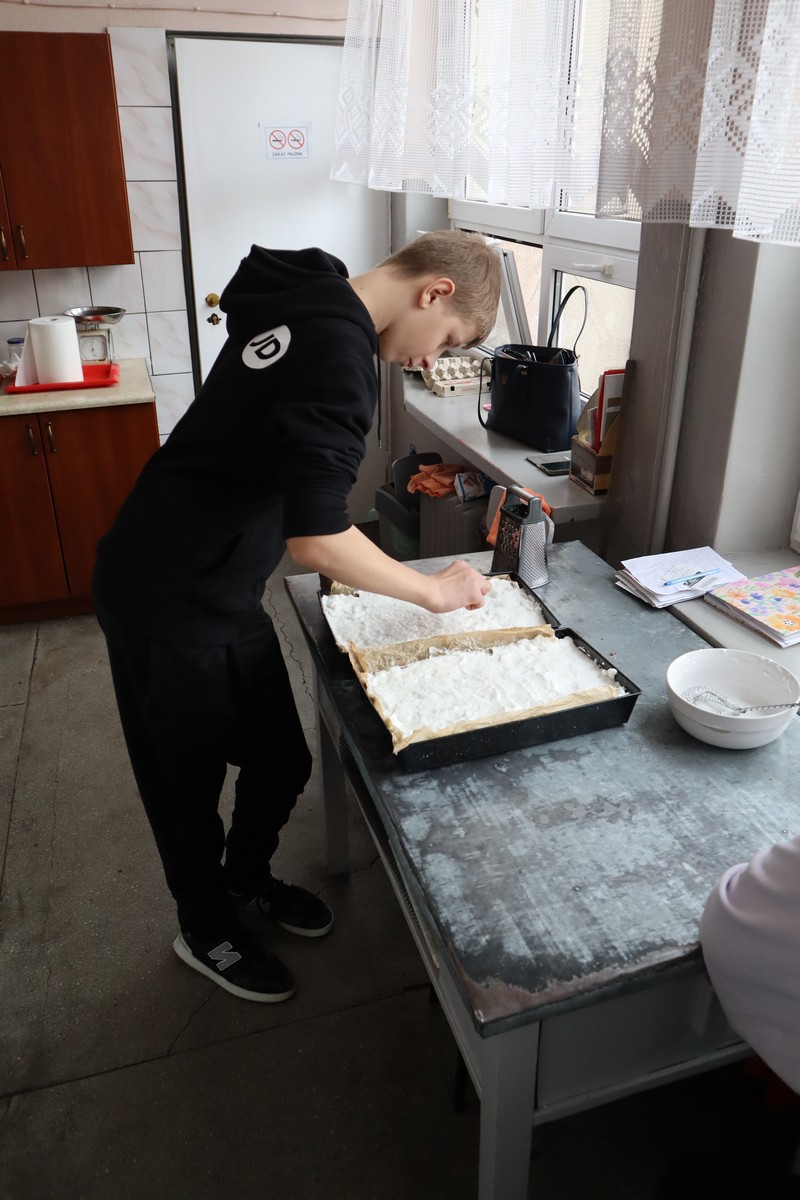 Od samego rana chłopcy ugniatali ciasto, pieczołowicie odmierzali proporcje, ubijali białka oraz wkładali całe swoje serce w każdą pracę, aby tym samym sprawić niezapomnianą radość oraz przyjemność wszystkim paniom.